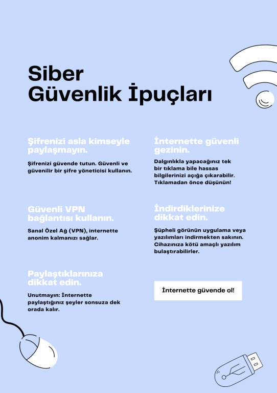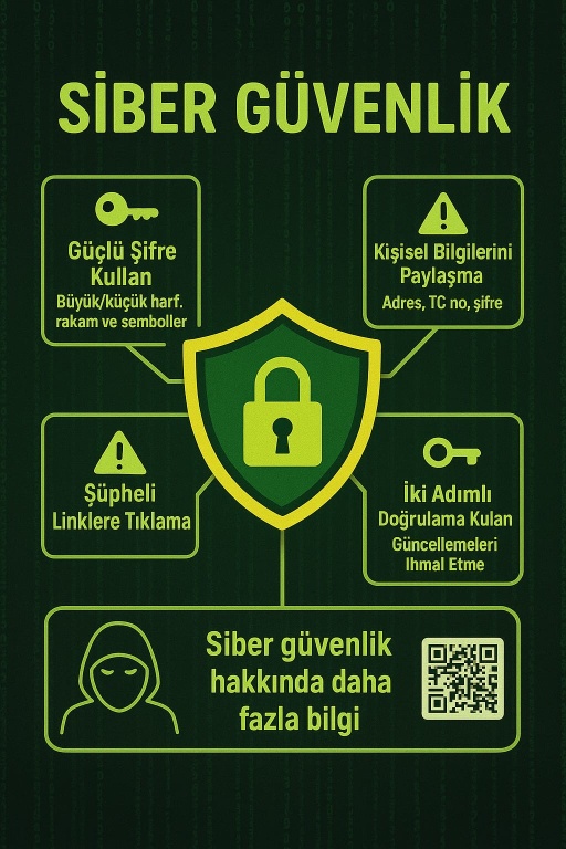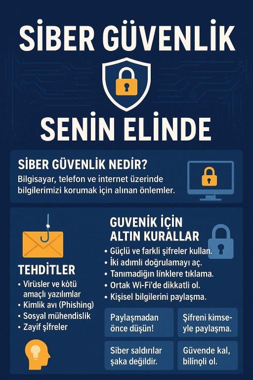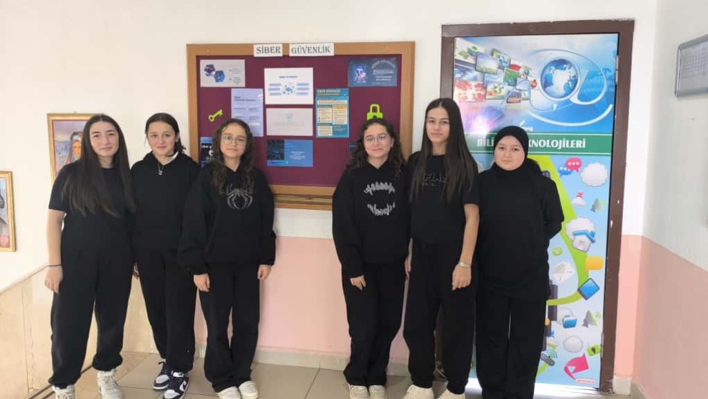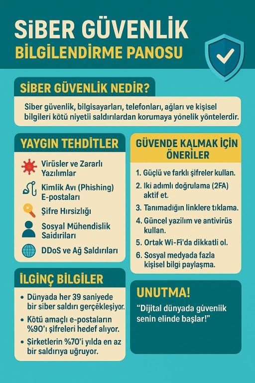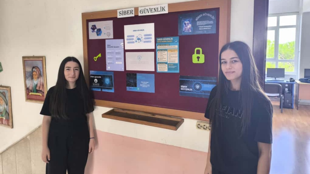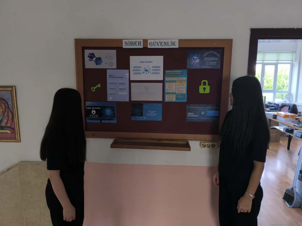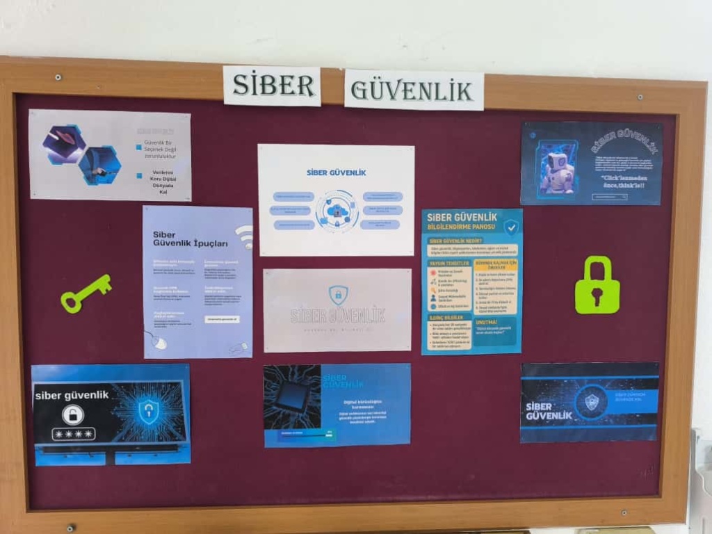 Okulumuz Bilişim Teknolojileri öğrencileri, öğretmenlerin danışmanlığında siber güvenliğe dikkat çekmek amacı ile pano oluşturdular.